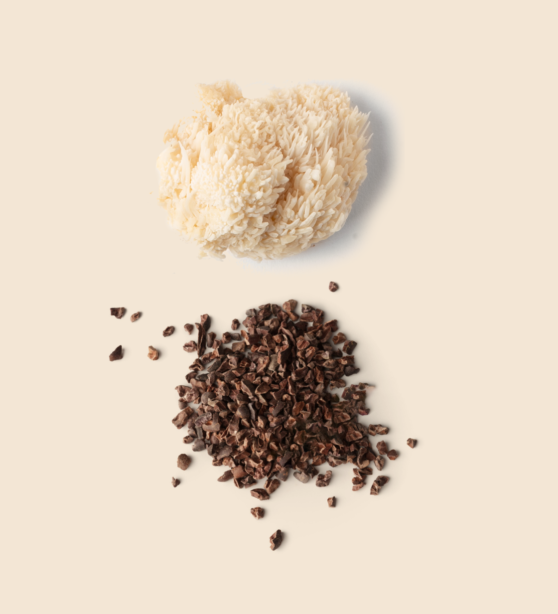 Mushrooms contain potent compounds such as beta-glucans, triterpenes, metabolites, Vitamin B + D, prebiotics, and proteins. These complex nutrients contribute to overall health and immune balance.